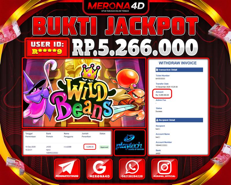 Selamat Kepada Member MERONA4D R*****9 Telah Jackpot Di WILD BEANS