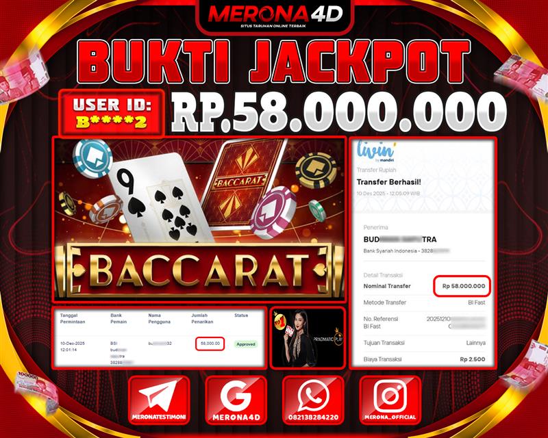 Selamat Kepada Member MERONA4D B*****2 Telah Jackpot Di BACCARAT