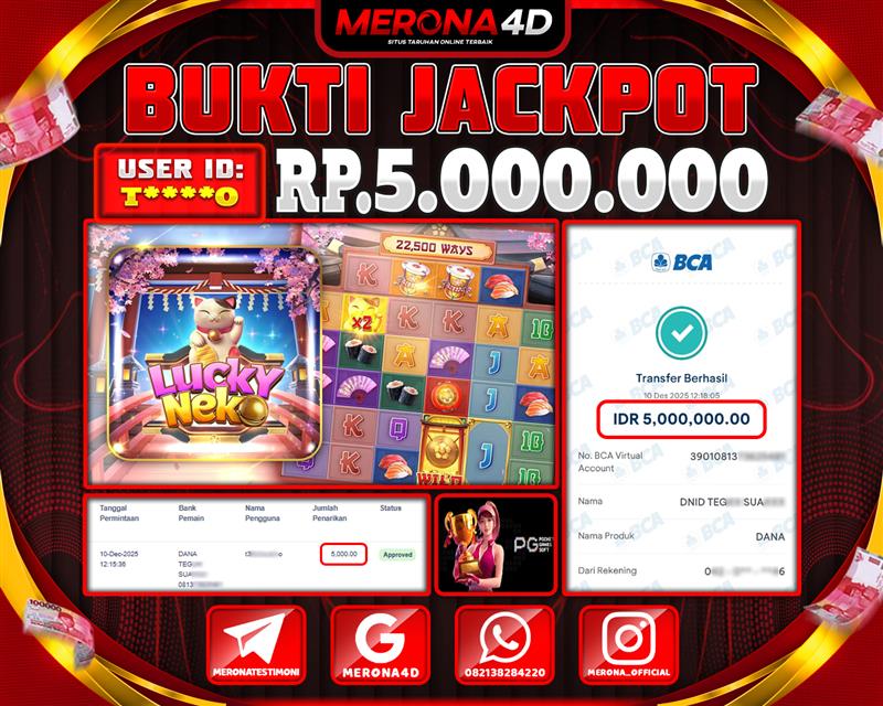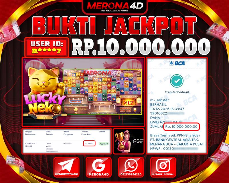 Selamat Kepada Member MERONA4D R*****7 Telah Jackpot Di LUCKY NEKO