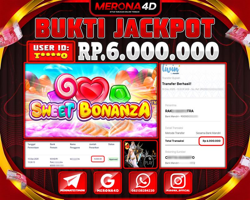 Selamat Kepada Member MERONA4D M*****A Telah Jackpot Di SWEET BONANZA 1000