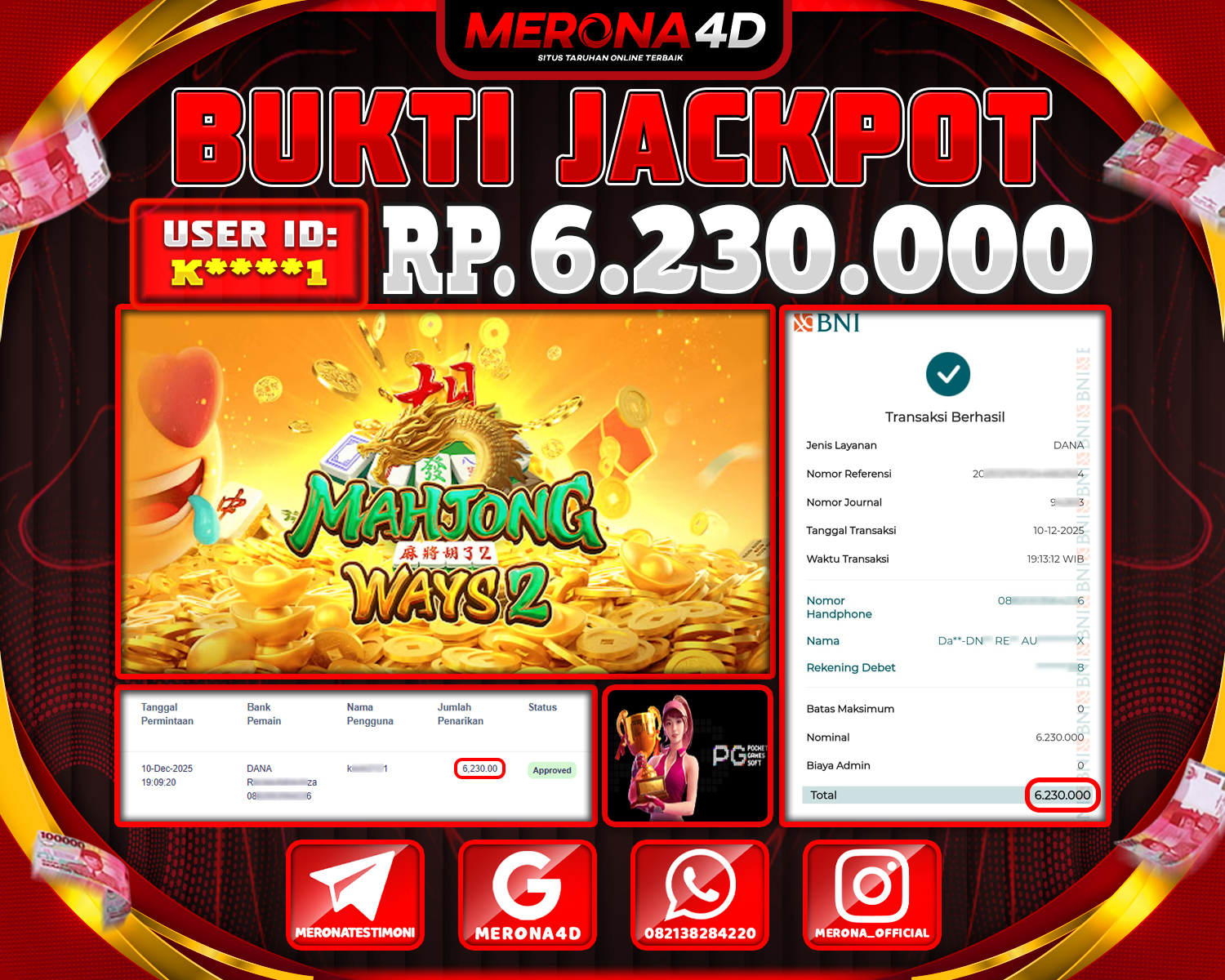 Selamat Kepada Member MERONA4D E****9 Telah Jackpot Di MAHJONG WAYS