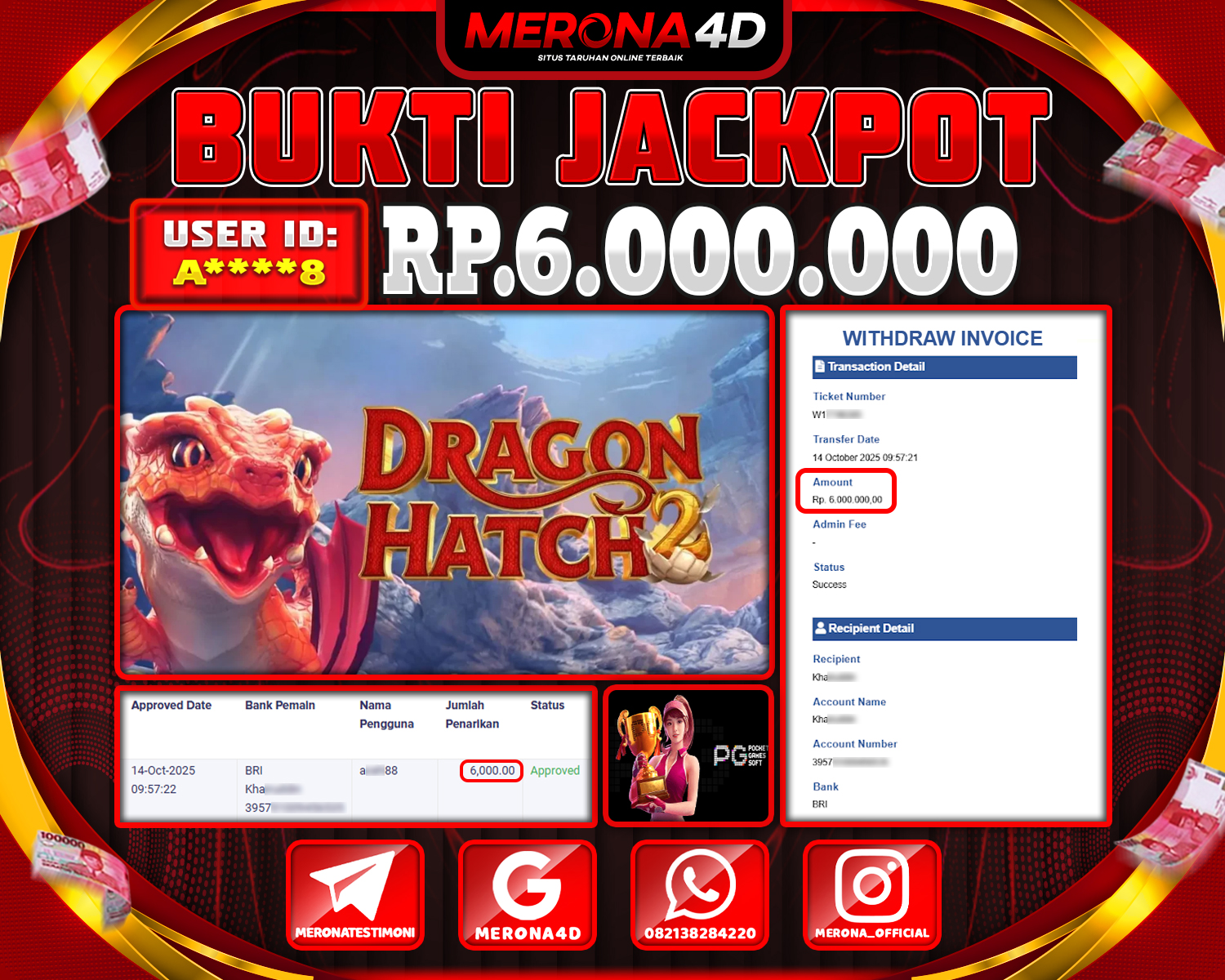 Selamat Kepada Member MERONA4D Aβ­‘οΏ½***οΏ½β­‘8 Telah Jackpot Di DRAGON HATCH 2