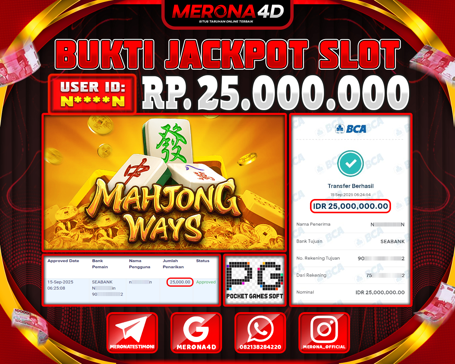 Selamat Kepada Member MERONA4D N****N Telah Jackpot Di MAHJONG WAYS