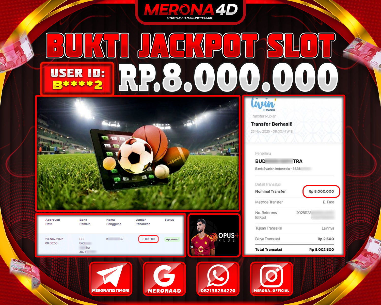 Selamat Kepada Member MERONA4D B****2 Telah Jackpot Di SPORTBOOKS