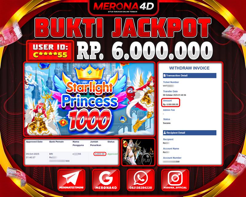 Selamat Kepada Member MERONA4D G****0 Telah Jackpot Di STARLIGHT PRINCESS 1000