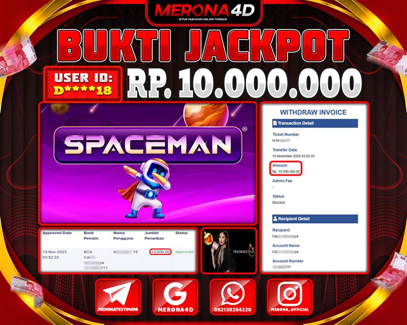 Selamat Kepada Member MERONA4D D*****18 Telah Jackpot Di SPACEMAN