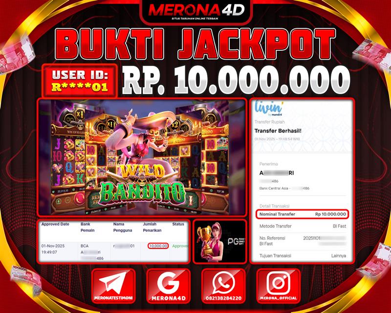 Selamat Kepada Member MERONA4D R*****01 Telah Jackpot Di WILD BANDITO