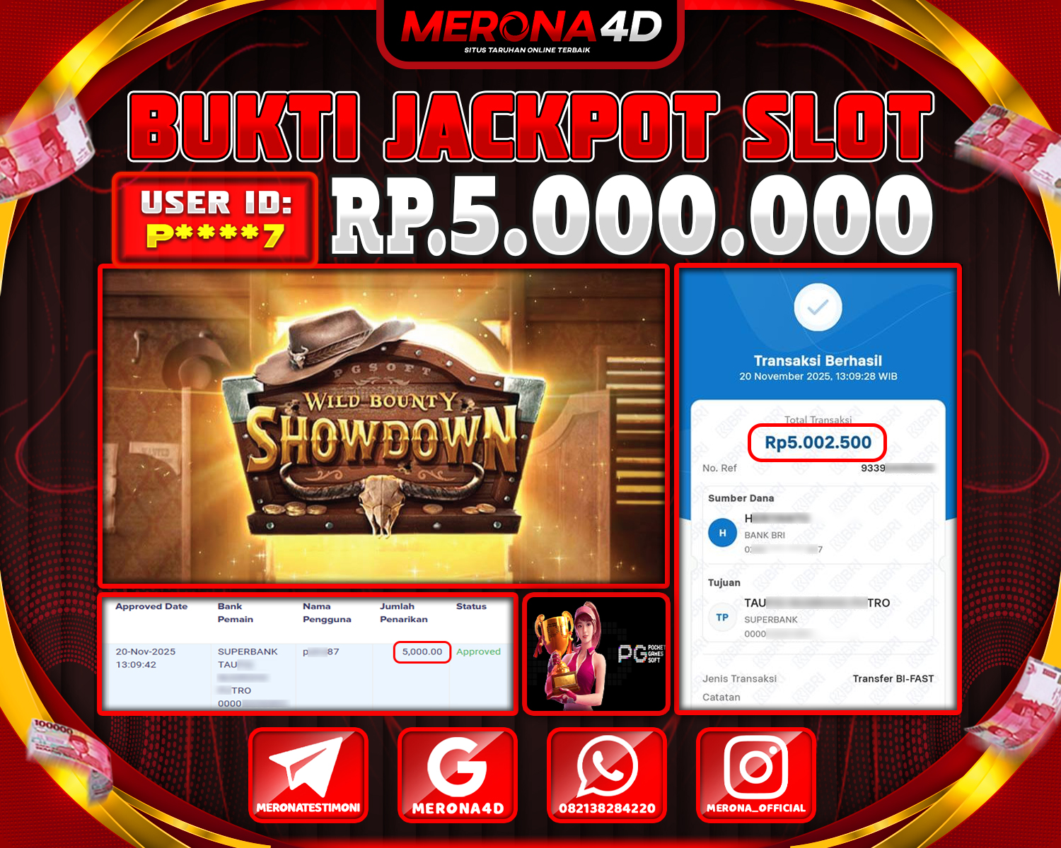Selamat Kepada Member MERONA4D P****7 Telah Jackpot Di WILD BOUNTY SHOWDOWN