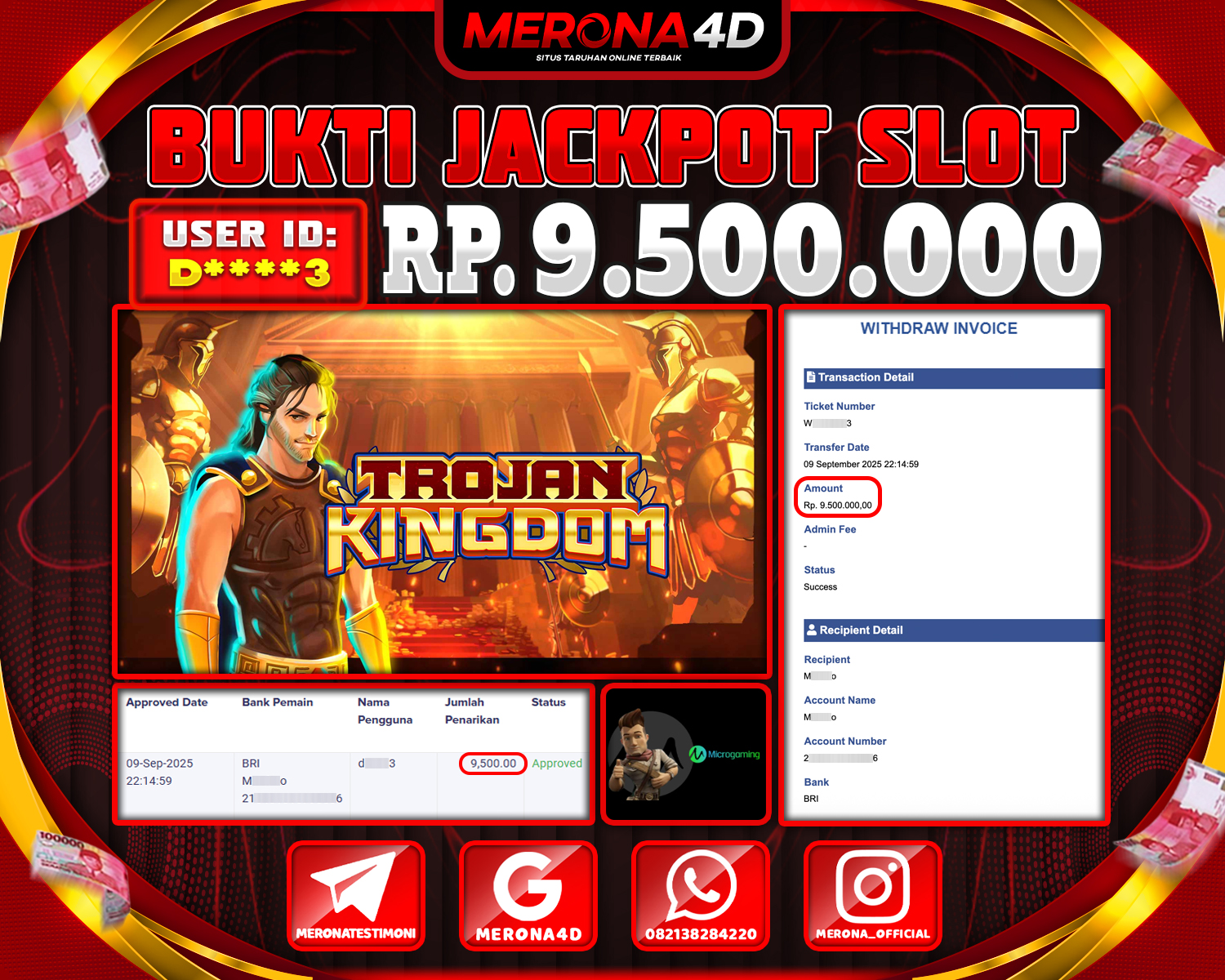 Selamat Kepada Member MERONA4D D****3 Telah Jackpot Di TROJAN KINGDOM