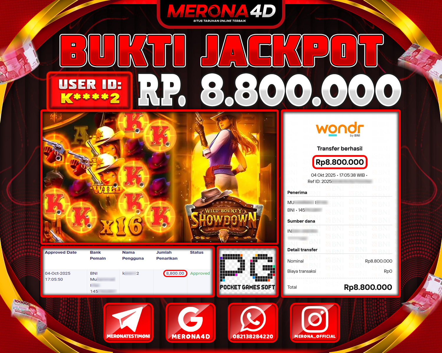 Selamat Kepada Member MERONA4D K****2 Telah Jackpot Di WILD BOUNTY SHOWDOWN