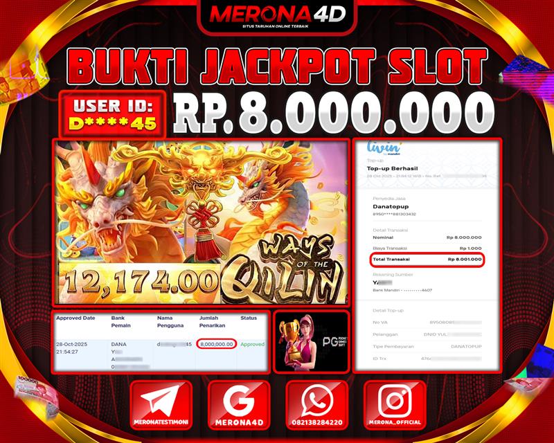 Selamat Kepada Member MERONA4D D*****45 Telah Jackpot Di WAYS OF THE QILIN