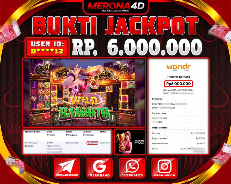 Selamat Kepada Member MERONA4D B*****12 Telah Jackpot Di WILD BANDITO