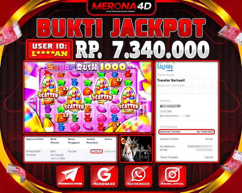Selamat Kepada Member MERONA4D L*****AN Telah Jackpot Di SUGAR RUSH 1000
