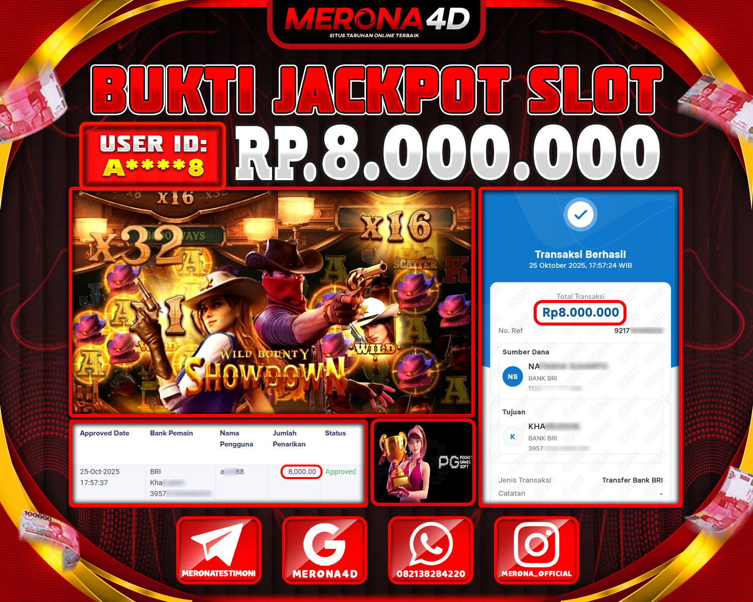 Selamat Kepada Member MERONA4D Aβ­‘οΏ½***οΏ½β­‘8 Telah Jackpot Di WILD BOUNTY SHOWDOWN