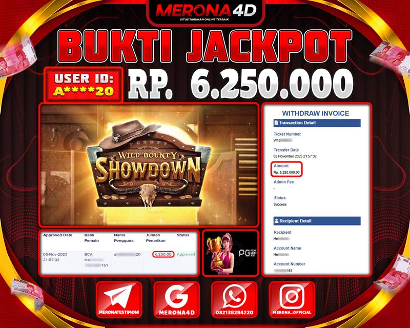 Selamat Kepada Member MERONA4D A*****20 Telah Jackpot Di WILD BOUNTY SHOWDOWN