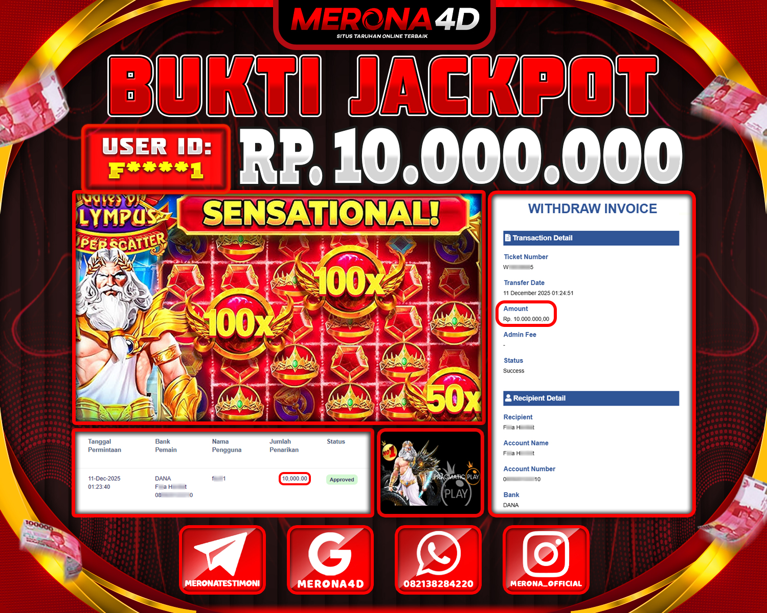 Selamat Kepada Member MERONA4D F****1 Telah Jackpot Di GATES OF OLYMPUS SUPER SCATTER
