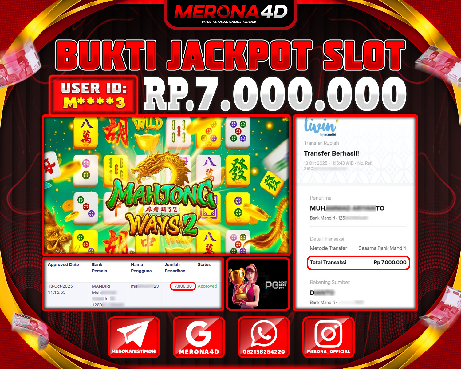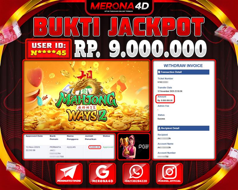 Selamat Kepada Member MERONA4D Mβ­‘οΏ½***οΏ½β­‘3 Telah Jackpot Di MAHJONG WAYS 2
