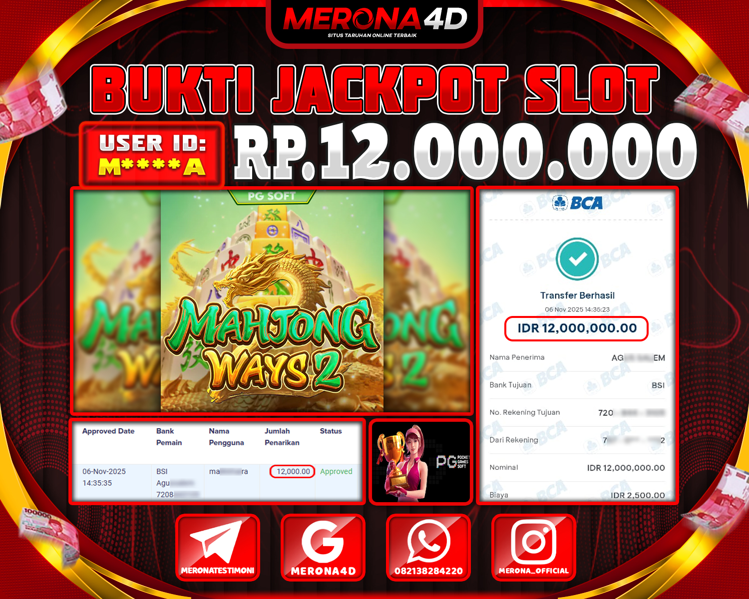 Selamat Kepada Member MERONA4D L****9 Telah Jackpot Di MAHJONG WAYS