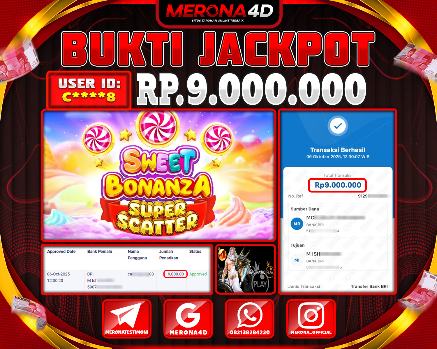 Selamat Kepada Member MERONA4D H****2 Telah Jackpot Di GATES OF OLYMPUS 1000
