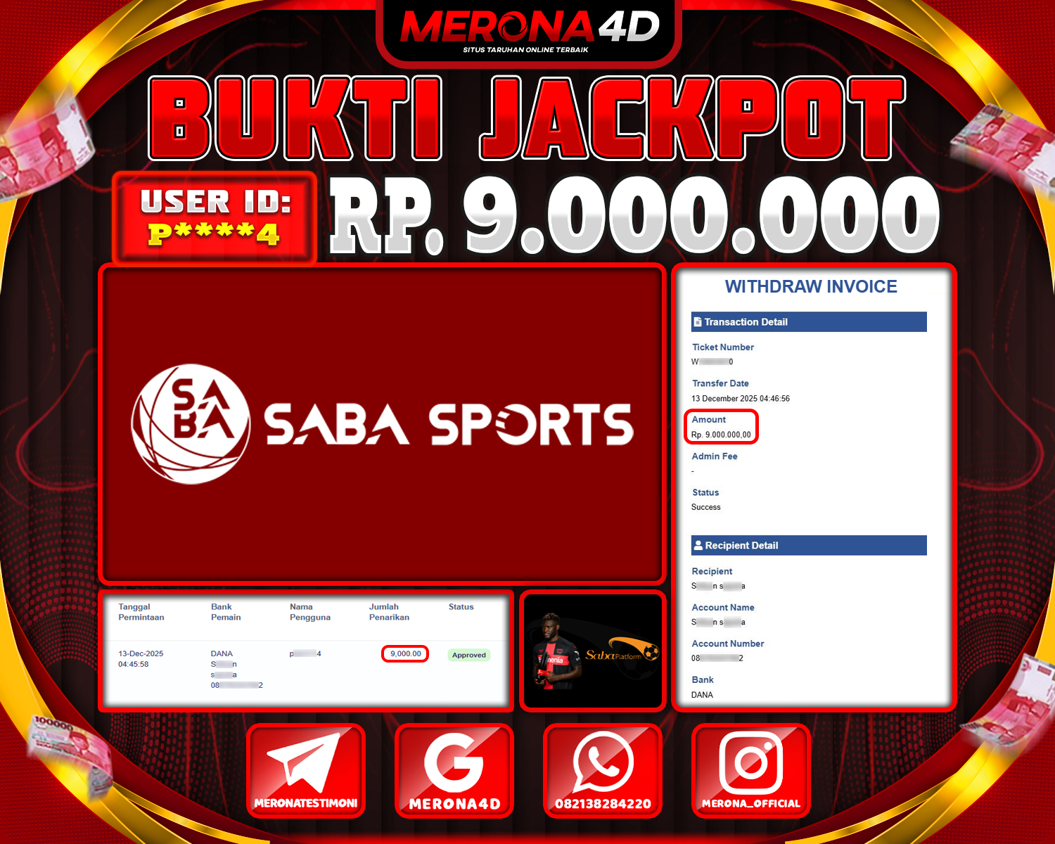 Selamat Kepada Member MERONA4D P****4 Telah Jackpot Di SABA SPORT