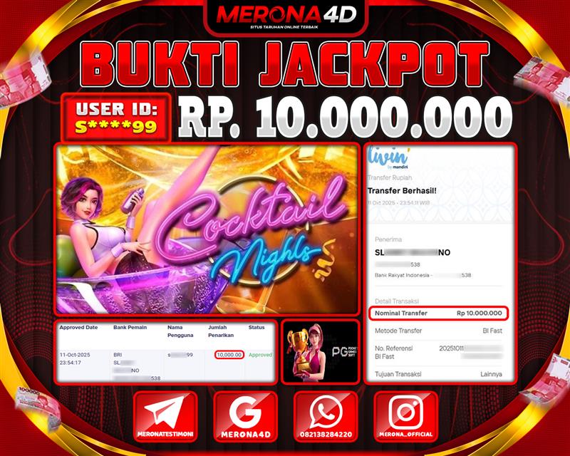 Selamat Kepada Member MERONA4D S*****99 Telah Jackpot Di COCKTAIL NIGHTS