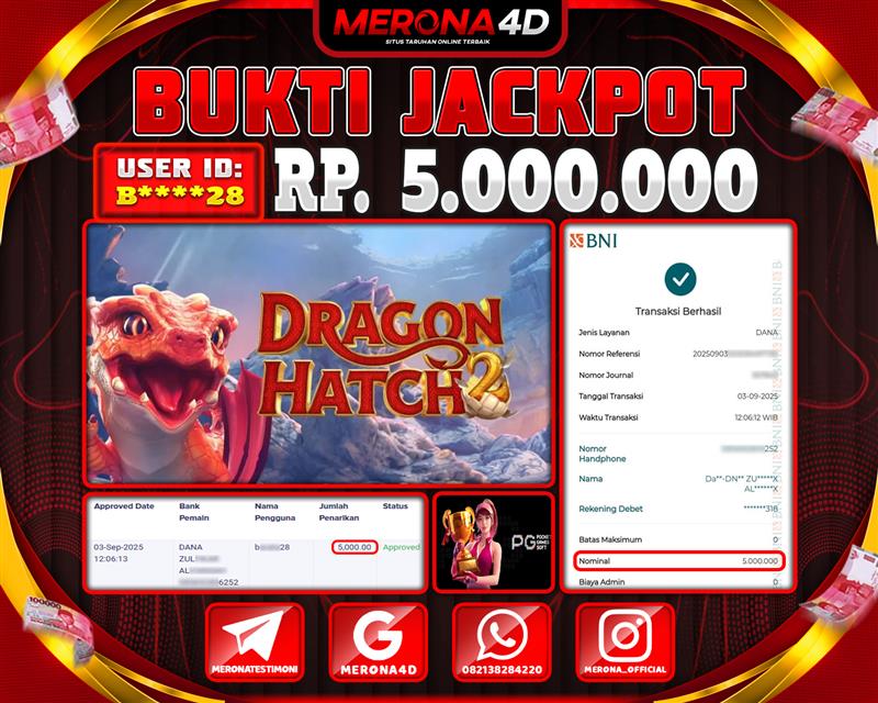 Selamat Kepada Member MERONA4D B*****28 Telah Jackpot Di DRAGON HATCH 2
