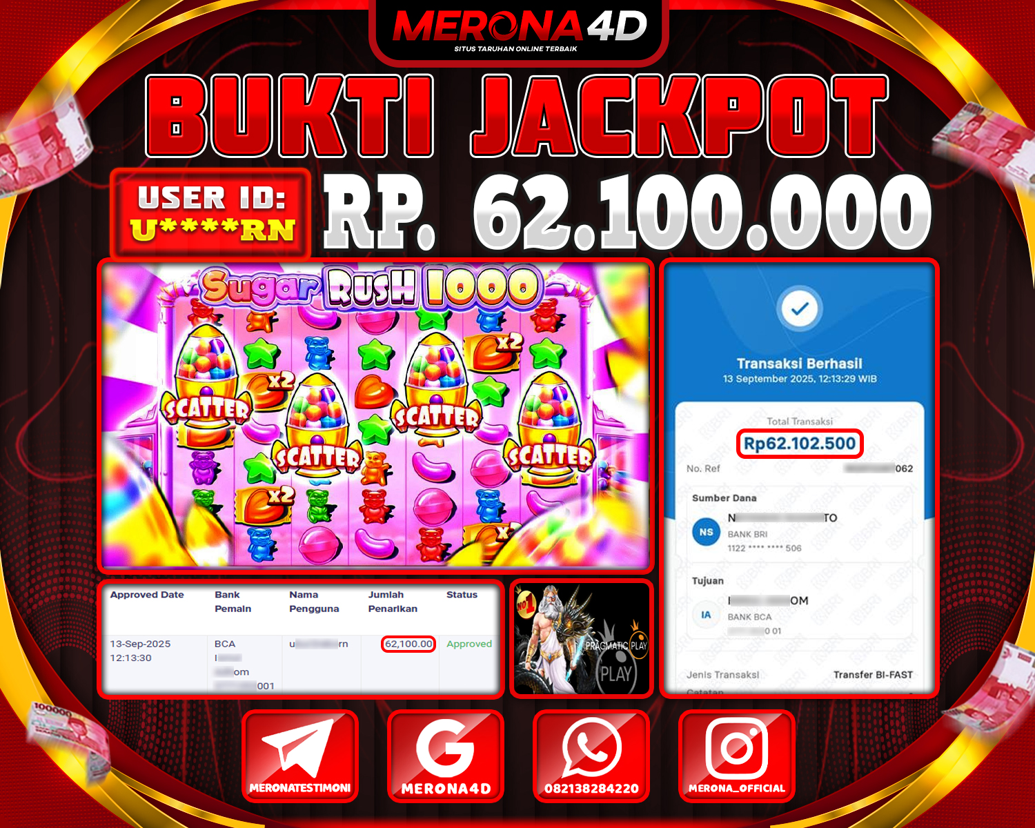 Selamat Kepada Member MERONA4D U*****RN Telah Jackpot Di SUGAR RUSH 1000