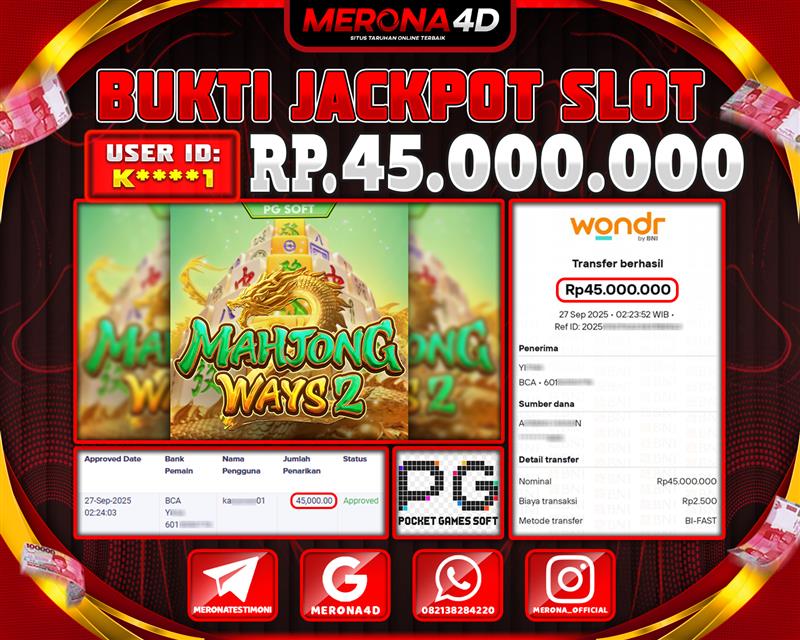 Selamat Kepada Member MERONA4D K****O Telah Jackpot Di MAHJONG WAYS 2