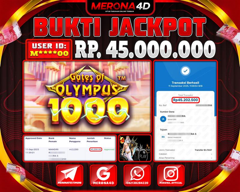 Selamat Kepada Member MERONA4D J***** Telah Jackpot Di SLOT88 OLYMPUS 1000