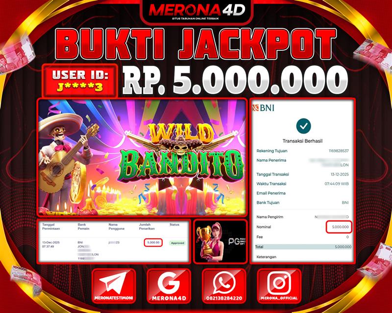 Selamat Kepada Member MERONA4D J****3 Telah Jackpot Di WILD BANDITO