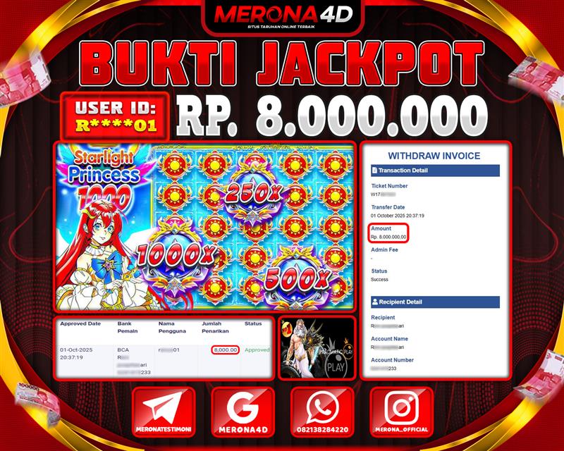Selamat Kepada Member MERONA4D R*****01 Telah Jackpot Di STARLIGHT PRINCESS 1000