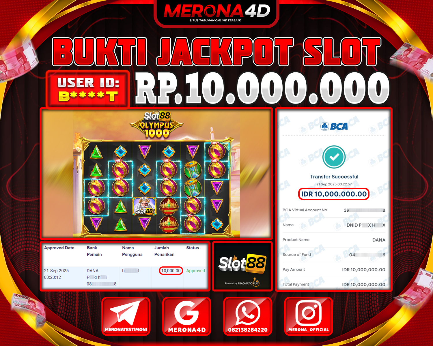 Selamat Kepada Member MERONA4D B****T Telah Jackpot Di SLOT88 OLYMPUS 1000