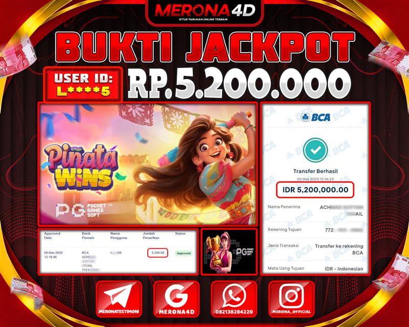 Selamat Kepada Member MERONA4D L*****5 Telah Jackpot Di PINATA WINS