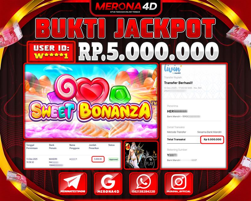 Selamat Kepada Member MERONA4D W*****1 Telah Jackpot Di SWEET BONANZA