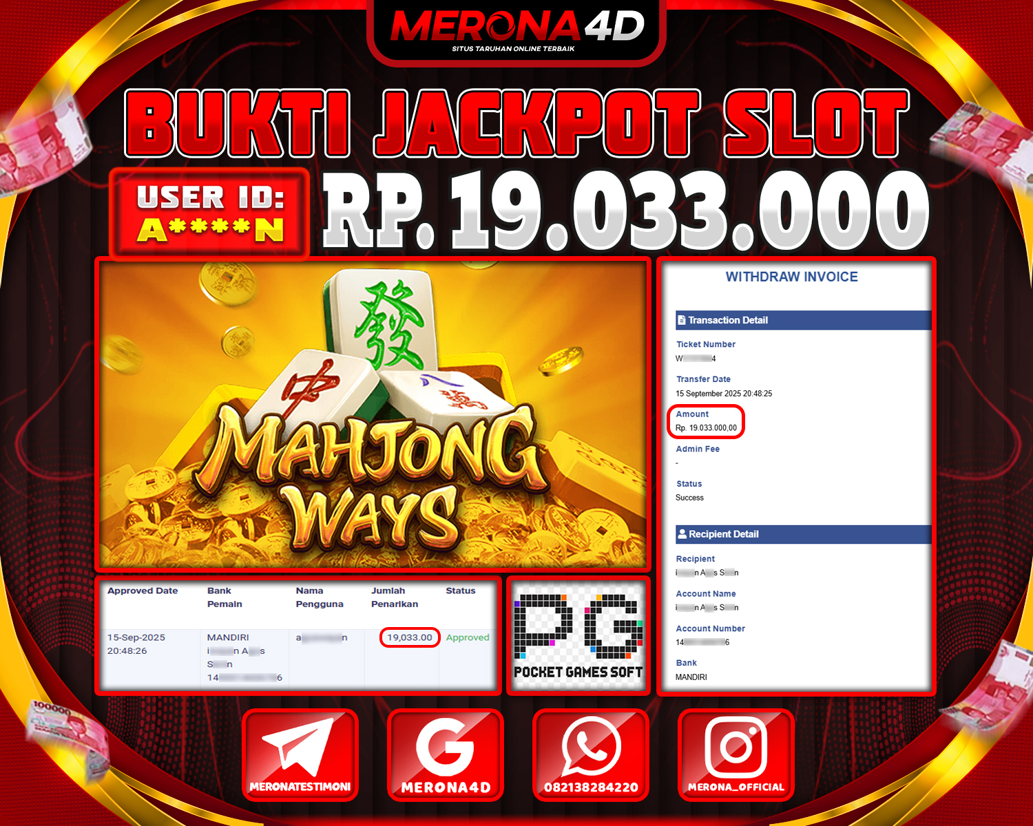 Selamat Kepada Member MERONA4D A****N Telah Jackpot Di MAHJONG WAYS