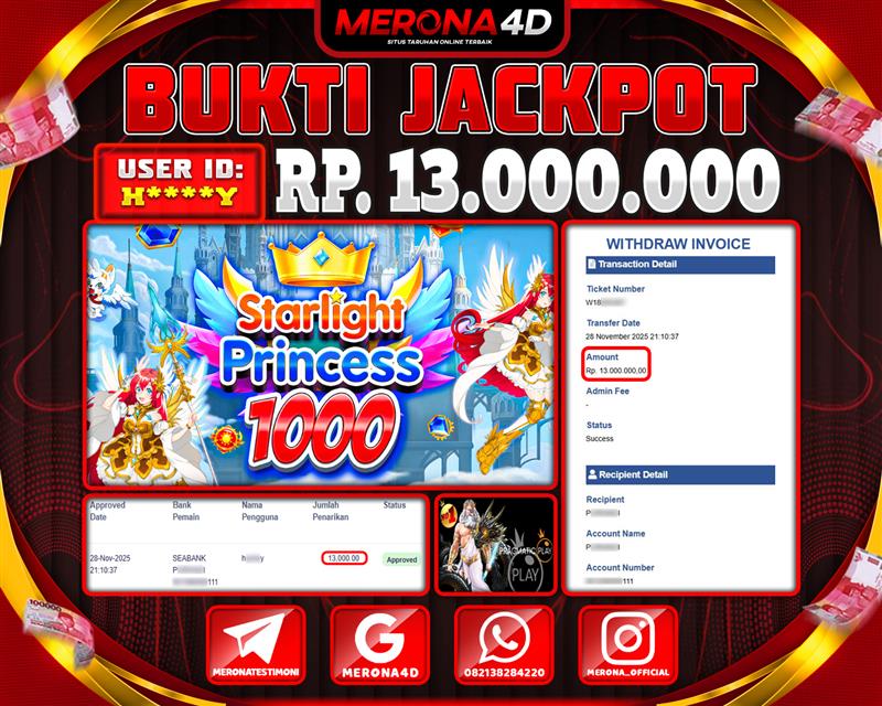 Selamat Kepada Member MERONA4D H*****Y Telah Jackpot Di STARLIGHT PRINCESS 1000
