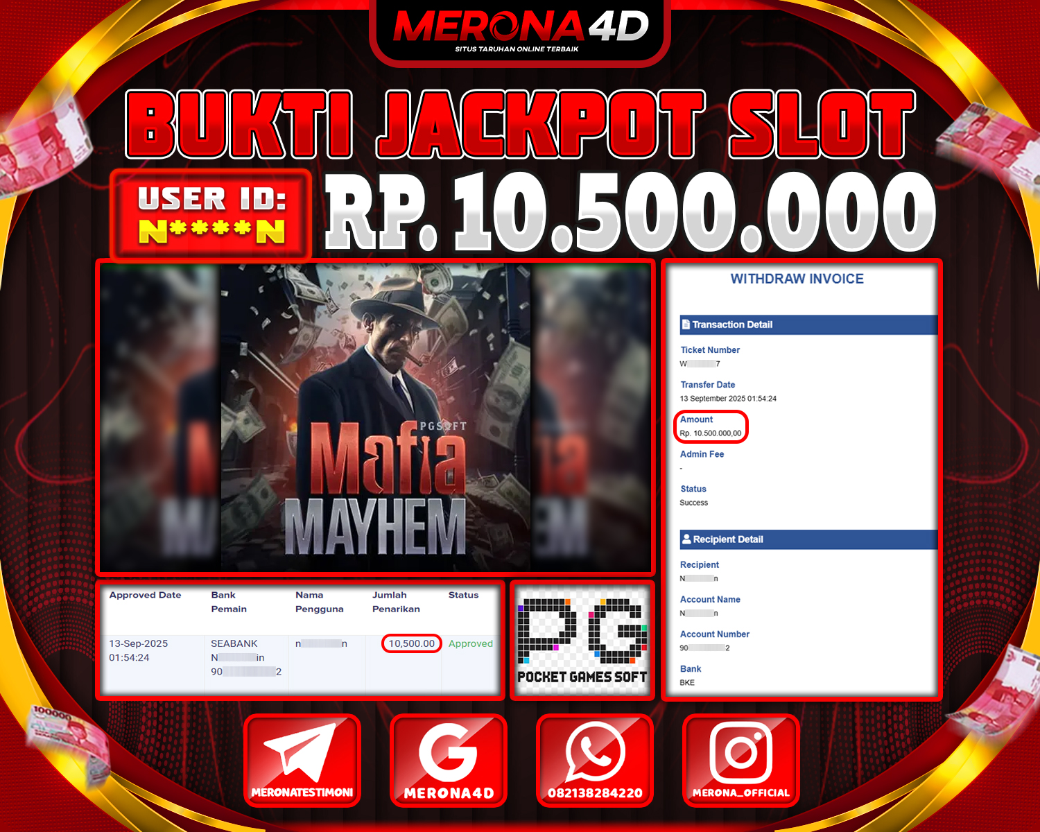 Selamat Kepada Member MERONA4D N****N Telah Jackpot Di MAFIA MAYHEM