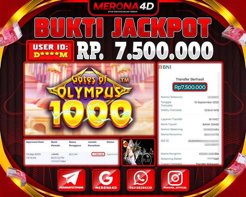 Selamat Kepada Member MERONA4D D****M Telah Jackpot Di GATES OF OLYMPUS 1000