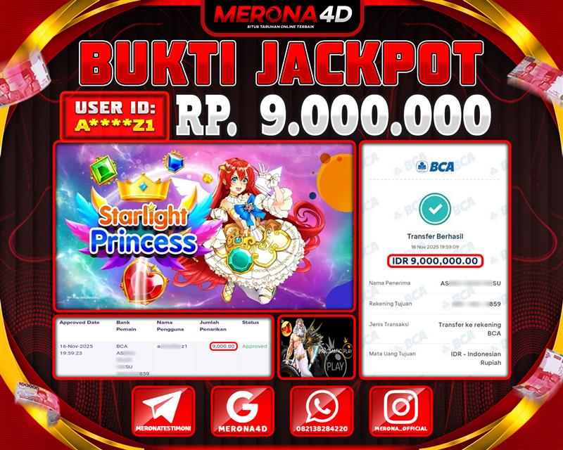 Selamat Kepada Member MERONA4D A*****Z1 Telah Jackpot Di STARLIGHT PRINCESS