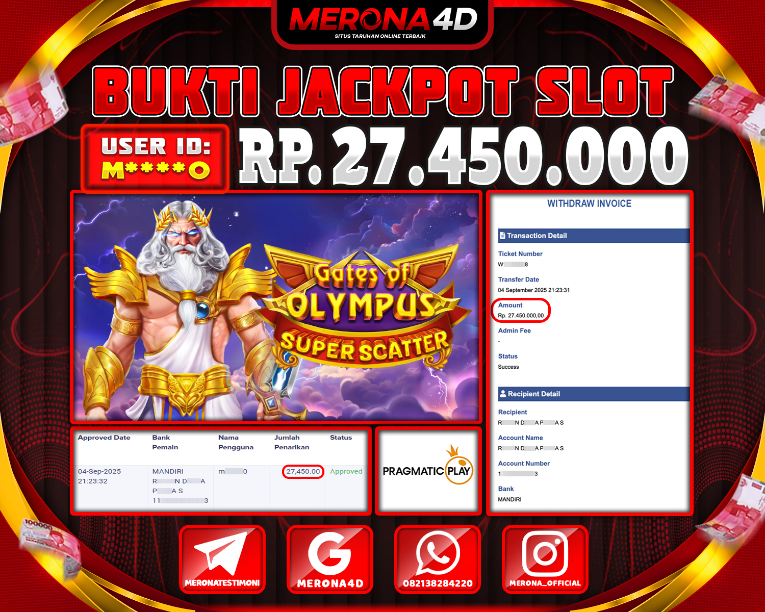 Selamat Kepada Member MERONA4D Rβ­‘οΏ½***οΏ½β­‘5 Telah Jackpot Di GATES OF OLYMPUS SUPER SCATTER