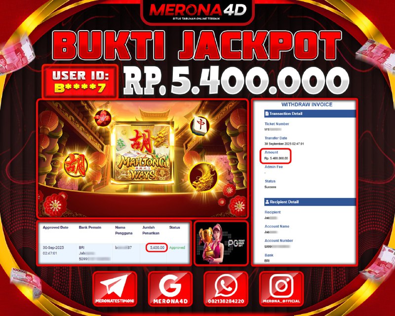Selamat Kepada Member MERONA4D Bβ­‘οΏ½***οΏ½β­‘7 Telah Jackpot Di MAHJONG WAYS
