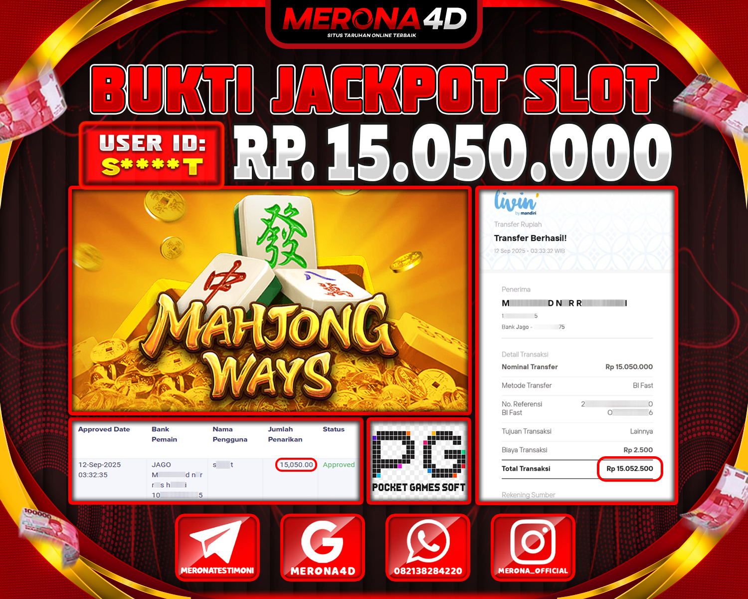 Selamat Kepada Member MERONA4D S****T Telah Jackpot Di MAHJONG WAYS