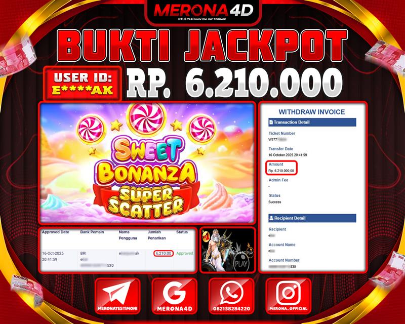 Selamat Kepada Member MERONA4D E*****AK Telah Jackpot Di SWEET BONANZA SUPER SCATTER