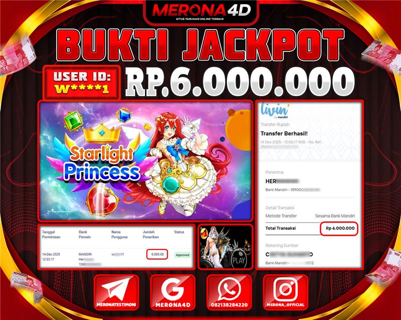 Selamat Kepada Member MERONA4D W*****1 Telah Jackpot Di STARLIGHT PRINCESS