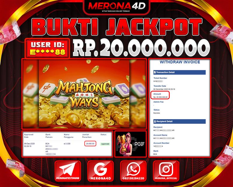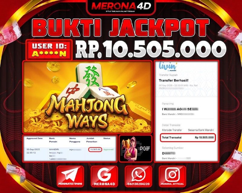 Selamat Kepada Member MERONA4D Aβ­‘οΏ½***οΏ½β­‘N Telah Jackpot Di MAHJONG WAYS