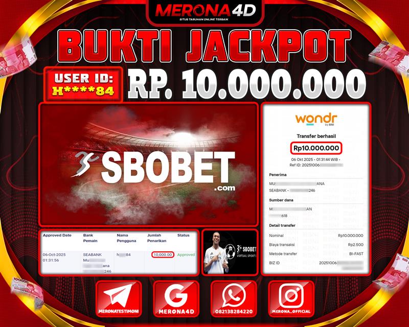 Selamat Kepada Member MERONA4D H*****84 Telah Jackpot Di SBOVIRTUALGAMES