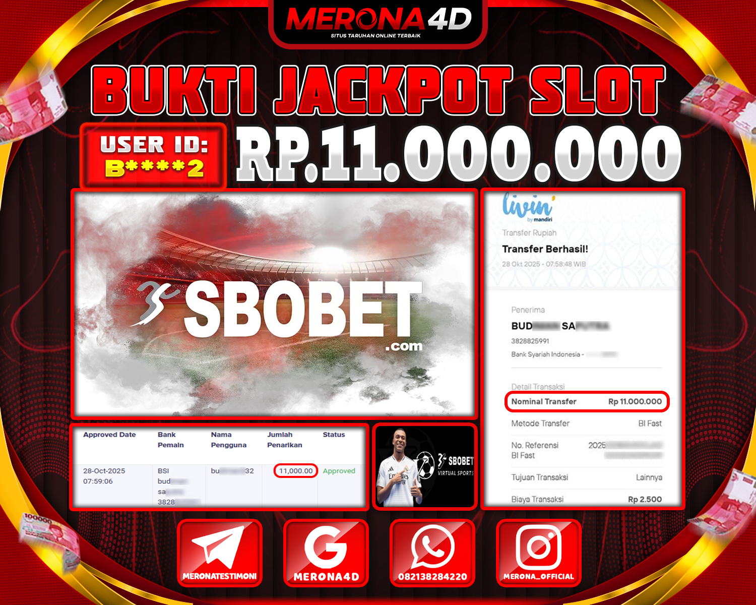 Selamat Kepada Member MERONA4D Bβ­‘οΏ½***οΏ½β­‘2 Telah Jackpot Di SBO SPORTS BOOK