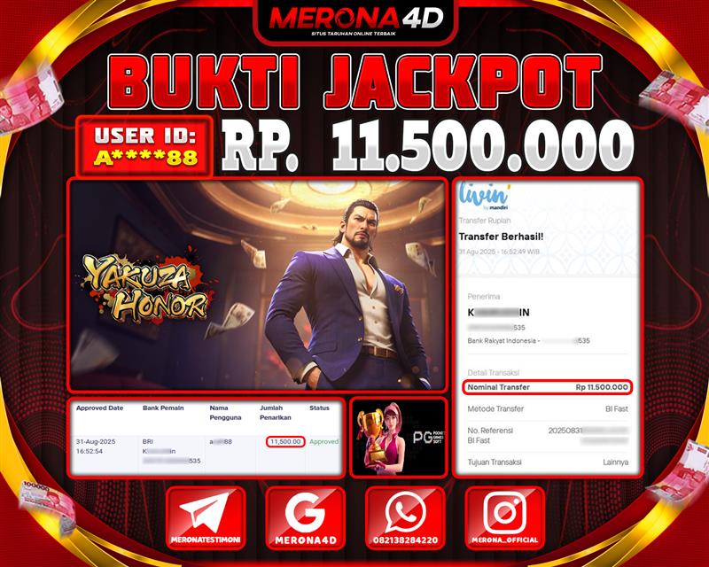 Selamat Kepada Member MERONA4D A*****88 Telah Jackpot Di YAKUZA HONOR