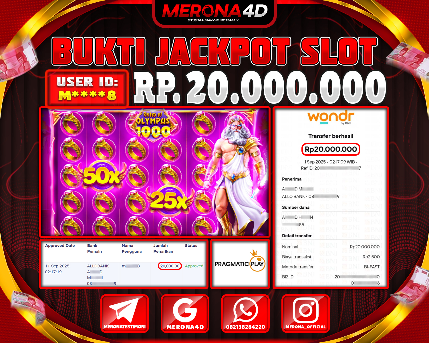 Selamat Kepada Member MERONA4D F*****G Telah Jackpot Di SLOT88 OLYMPUS 1000