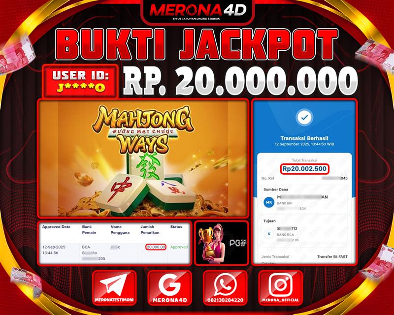 Selamat Kepada Member MERONA4D J****0 Telah Jackpot Di MAHJONG WAYS 1